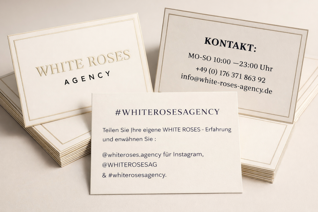 White Roses steht für Gesellschaft mit Klasse. Unsere Gesellschaftsdamen sind kultiviert, charmant und bewegen sich mit natürlicher Eleganz in jedem Umfeld. Wir sorgen dafür, dass Sie diese Momente nicht alleine erleben.